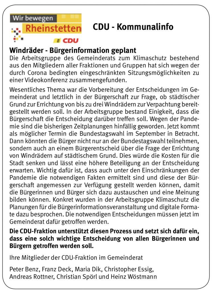 Es ist auch im Interesse der CDU-Fraktion eine erfolgsversprechende Politik der Bürgerinformation zu betreiben,
