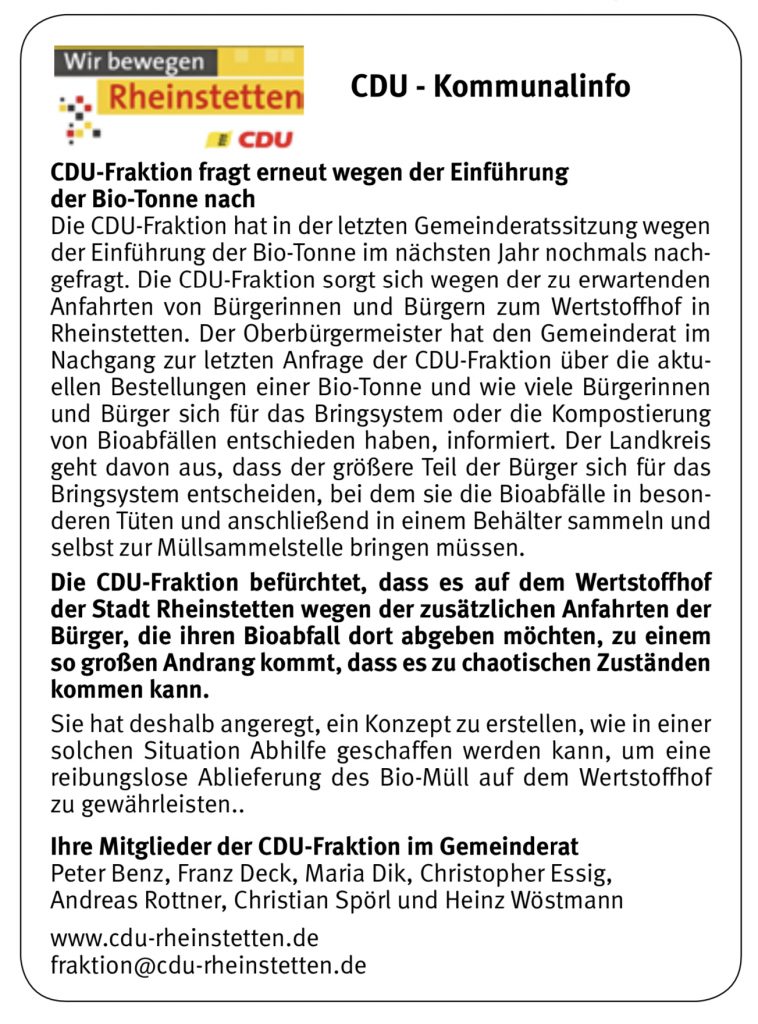 Die viertel Seite der CDU im Amtsblatt Rheinstetten vom 29.10.2020