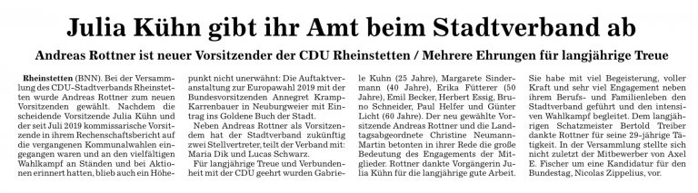 Höhepunkt war die Auftaktveranstaltung zur Europawahl mit der Bundesvorsitzenden Annegret Kramp-Karrenbauer in Neuburgweier und dem Eintrag ins Goldene Buch der Stadt Rheinstetten der uns wohl für immer im Gedächtnis bleiben wird. Vertrauen und die konstruktive Mitarbeit haben das Bild, das der Stadtverband, die CDU-Gemeinderatsfraktion in den vergangenen Jahren abgegeben hat, geprägt.