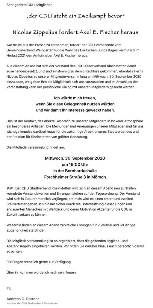 EINLADUNG / INFORMATION zur Mitgliederversammlung am Mittwoch, 30. September 2020