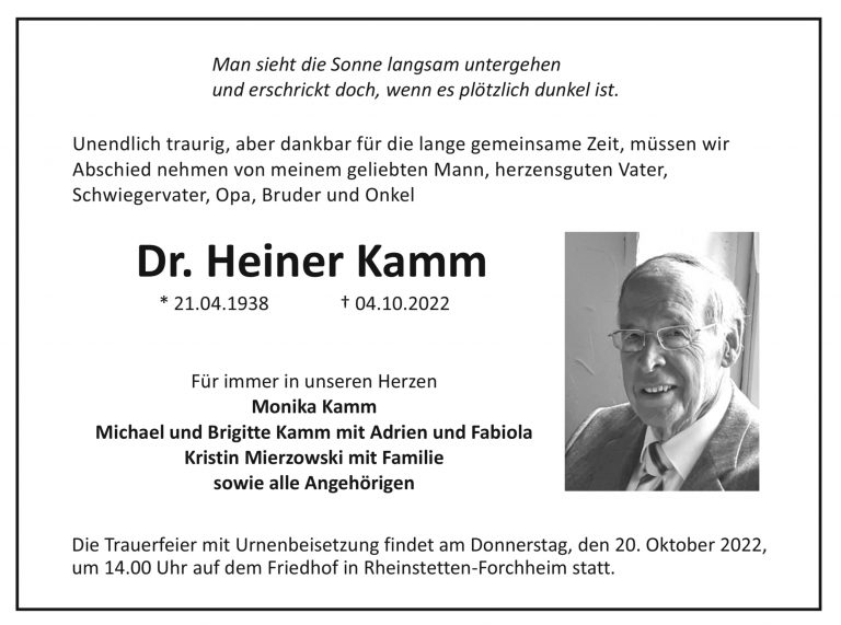 Herr Dr. Heiner Kamm trat am 1. Januar 1956 in den damals selbstständigen CDU-Ortsverband Forchheim ein, von 1969 bis 1971 begleitete er das Amt des Vorsitzenden in dieser damaligen Umbruchzeit gelang es ihm durch seine ruhige, menschliche und vor allem besonnen Art die Mitglieder aus den verschiedensten Strömungen zusammen zu führen und zusammen zu halten.