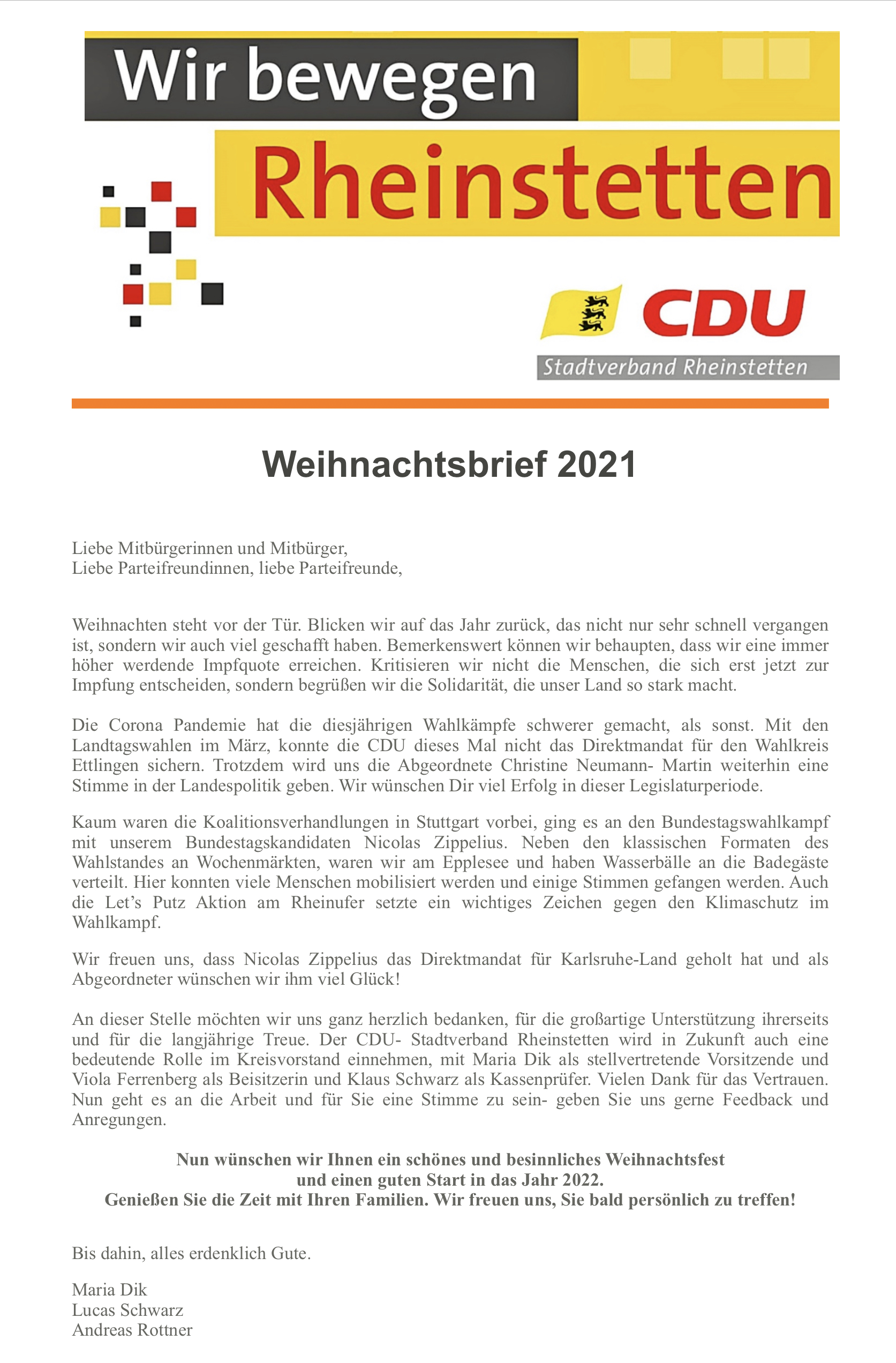 Liebe Mitglieder der CDU Rheinstetten,